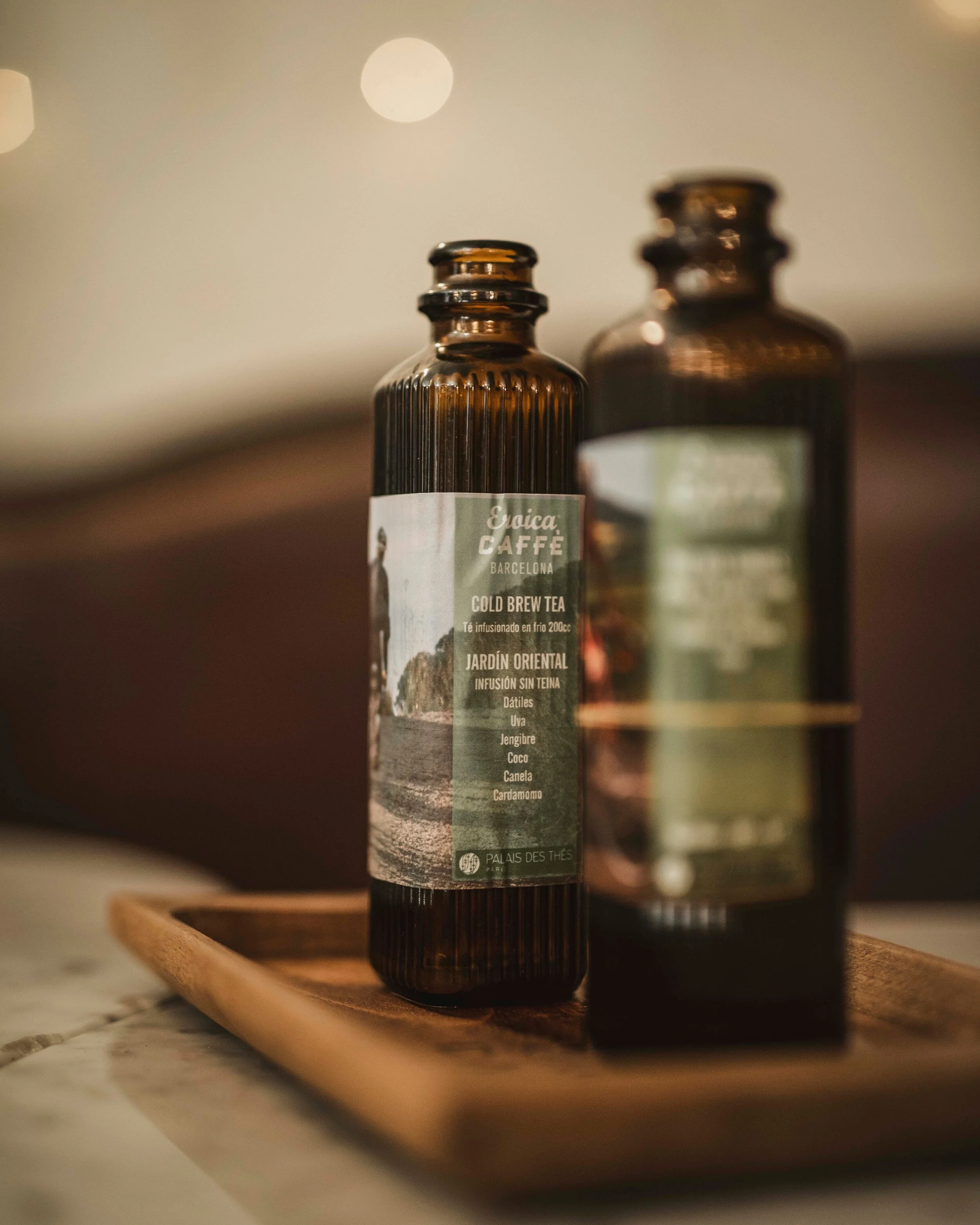 Los presentamos en unas preciosas botellas recuperadas, porque intentamos no generara residuos de envases de manera innecesaria, sean del material que sea. Por esa razón reutilizamos nuestras botellas de Tónica, Ginger Beer y Ginger Ale. Después de ser utilizadas con su producto original, las higienizamos y reutilizamos con nuestros tés y cafés infusionados en frío, pero aquí no tiene por qué acabar su vida, las botellas que os lleváis a casa las podéis reutilizar incluso de florero, vuestra imaginación pondrá el límite.