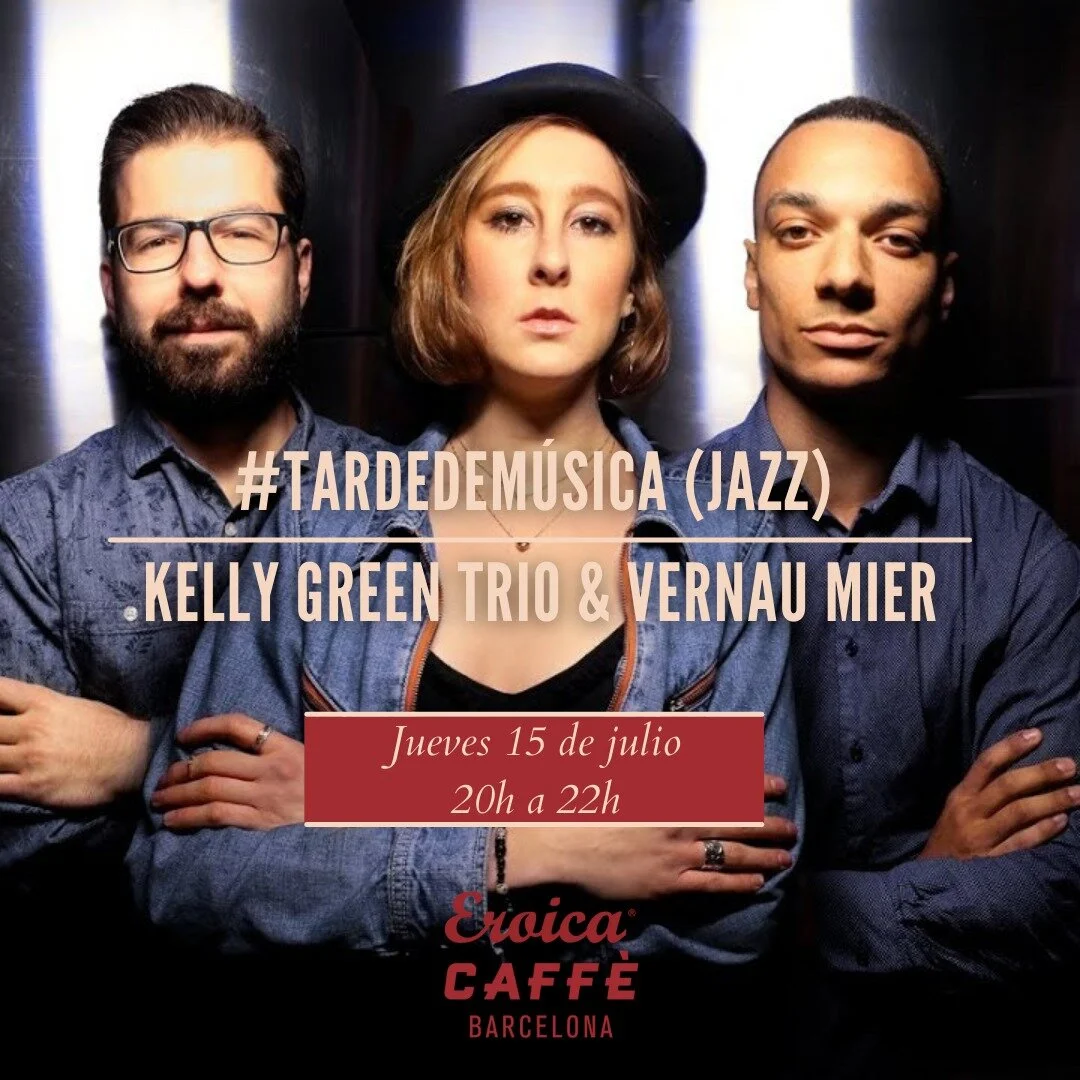 Ya tenemos una nueva fecha de nuestra Tarde de Música (Jazz) en Eroica Caffe Barcelona, nuestro Ciclo de Música en Directo, y en esta ocasión, nos acompañarán "Kelly Green Trio & Vernau Miller".